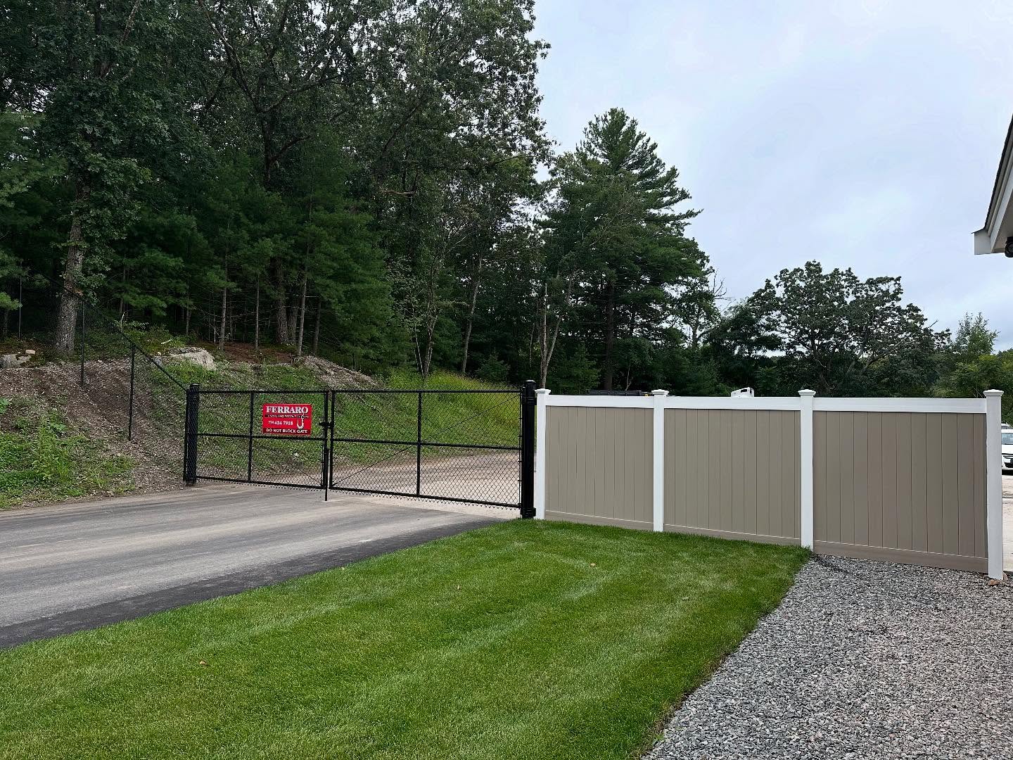 Ferraro Towing’s Ashland facility now features a comprehensive security perimeter combining 6-foot chain-link with stylish two-tone vinyl accents. This hybrid approach delivers the durability and visual appeal needed to professionally secure a commercial yard while enhancing the company’s appearance. Contact us for a free estimate.