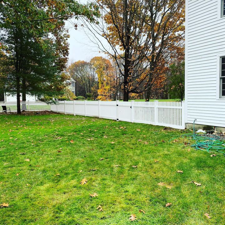 A recent installation of a gorgeous vinyl picket fence by our devoted crew adds charm as the year concludes. Consider beautifying your property with our helpperuse our work and plan ahead for spring. Reserve your project slot early to ensure timely installation.