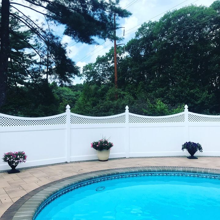 Framingham residents can now enjoy their weekend by the pool with a new scalloped lattice top vinyl privacy fence, installed just before the rain. Our portfolio displays this refreshing project, perfect for those poolside moments. Planning to refresh your pool area with privacy and style? We can help, reach out to us.