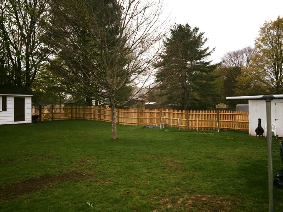 Braving the rain, our team completed a 5-foot high cedar open picket fence with pressure-treated posts on Elm Street in Framingham. The harmony of the fence with the ground contour is illustrated in our portfolio, establishing safety and beauty even on rainy days. Need a pet-friendly and appealing fence? We’re here for you.