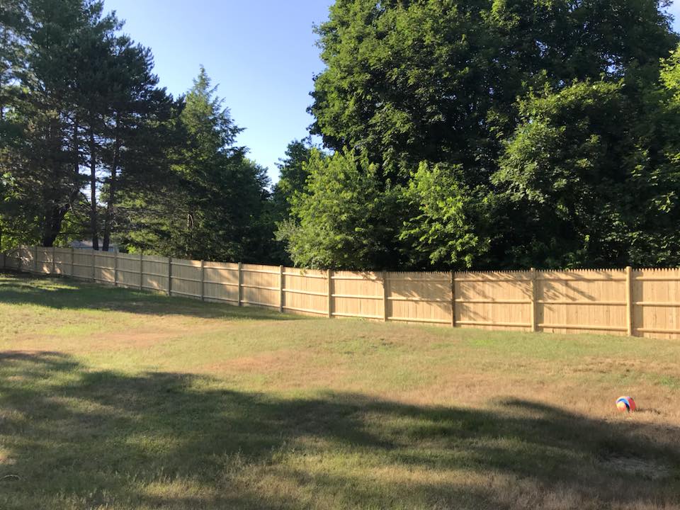 Holliston’s Regal Street is now secured with a new 6-foot high cedar stockade fence, combining durability with stately aesthetics. Our portfolio shows how your property can gain both privacy and a regal appeal. In need of a solid fencing upgrade? We’re just a call away.