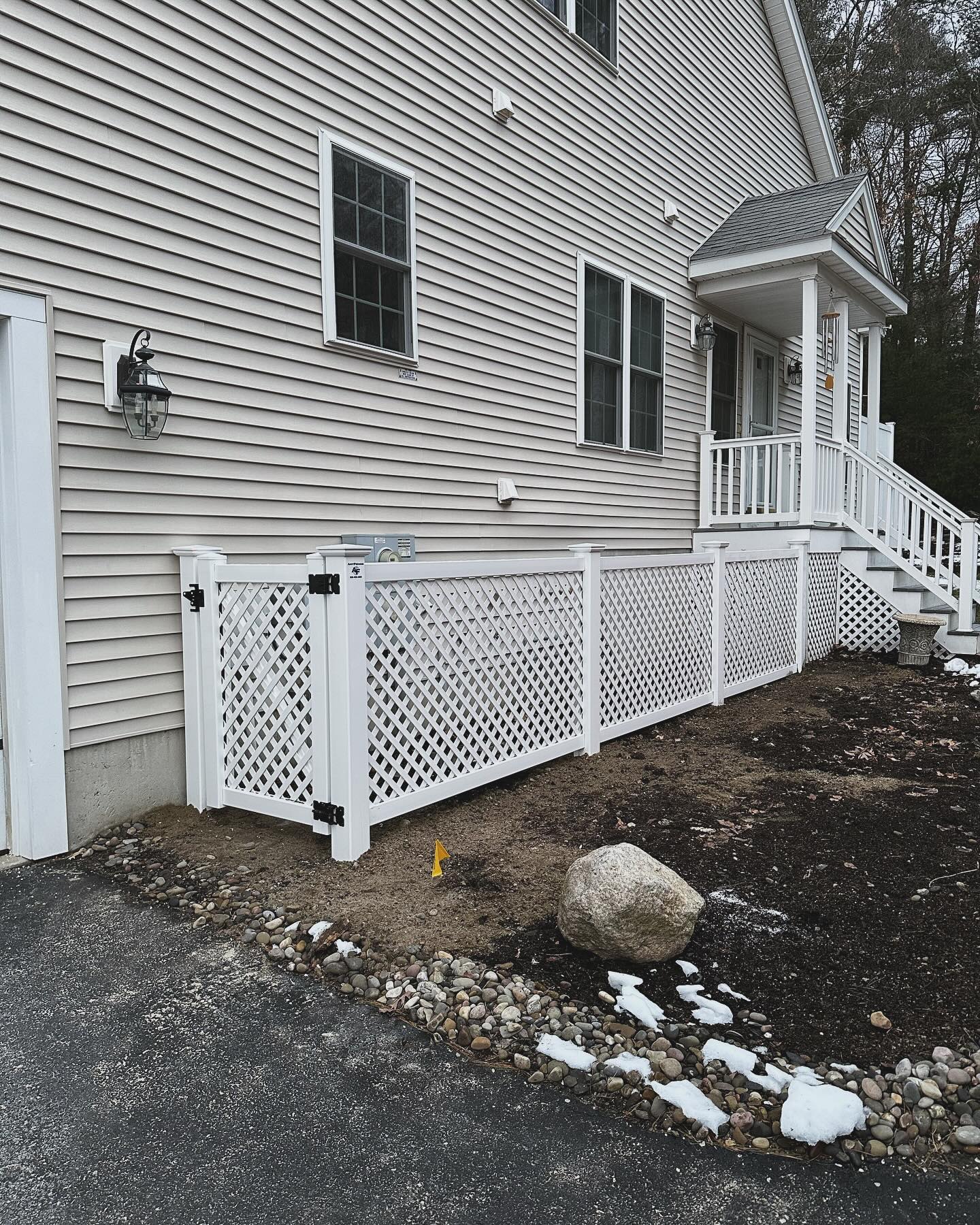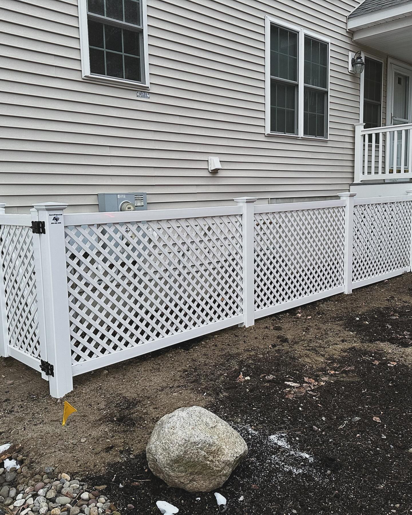 Melo’s crew designed and installed a beautiful lattice fence enclosure for a Medway condo complex, combining privacy with attractive aesthetics. Lattice design allows airflow while maintaining property boundaries. Want lattice fencing for your condo community? Contact us for a free estimate.
