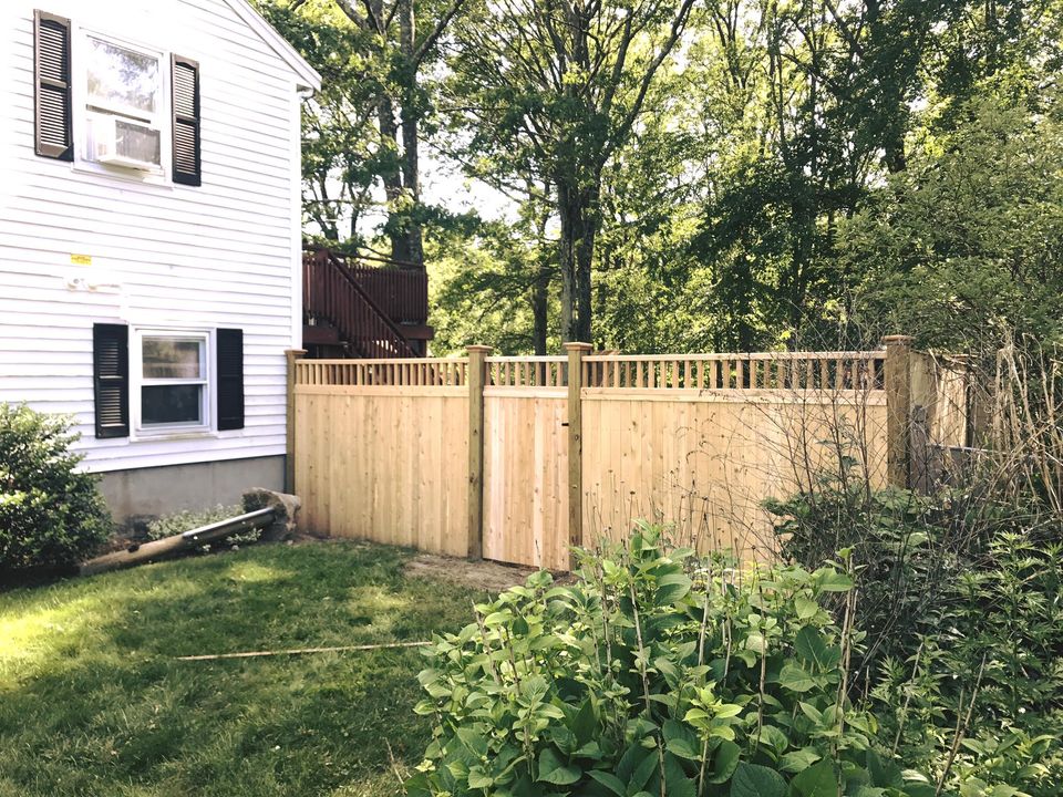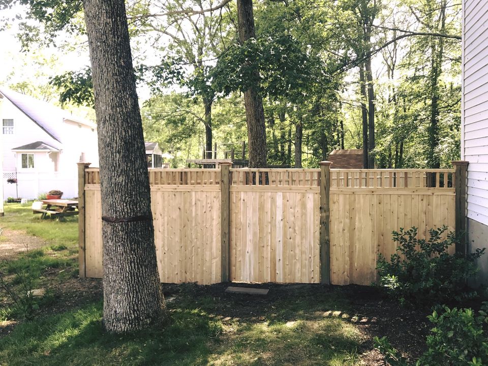 Milford’s Redwood Drive now features a stunning tongue and groove cedar privacy fence with an elegant closed spindletop. Explore our portfolio for a close-up of this superb fencing project. Intrigued by what you see? Connect with us for your property’s enhancement.