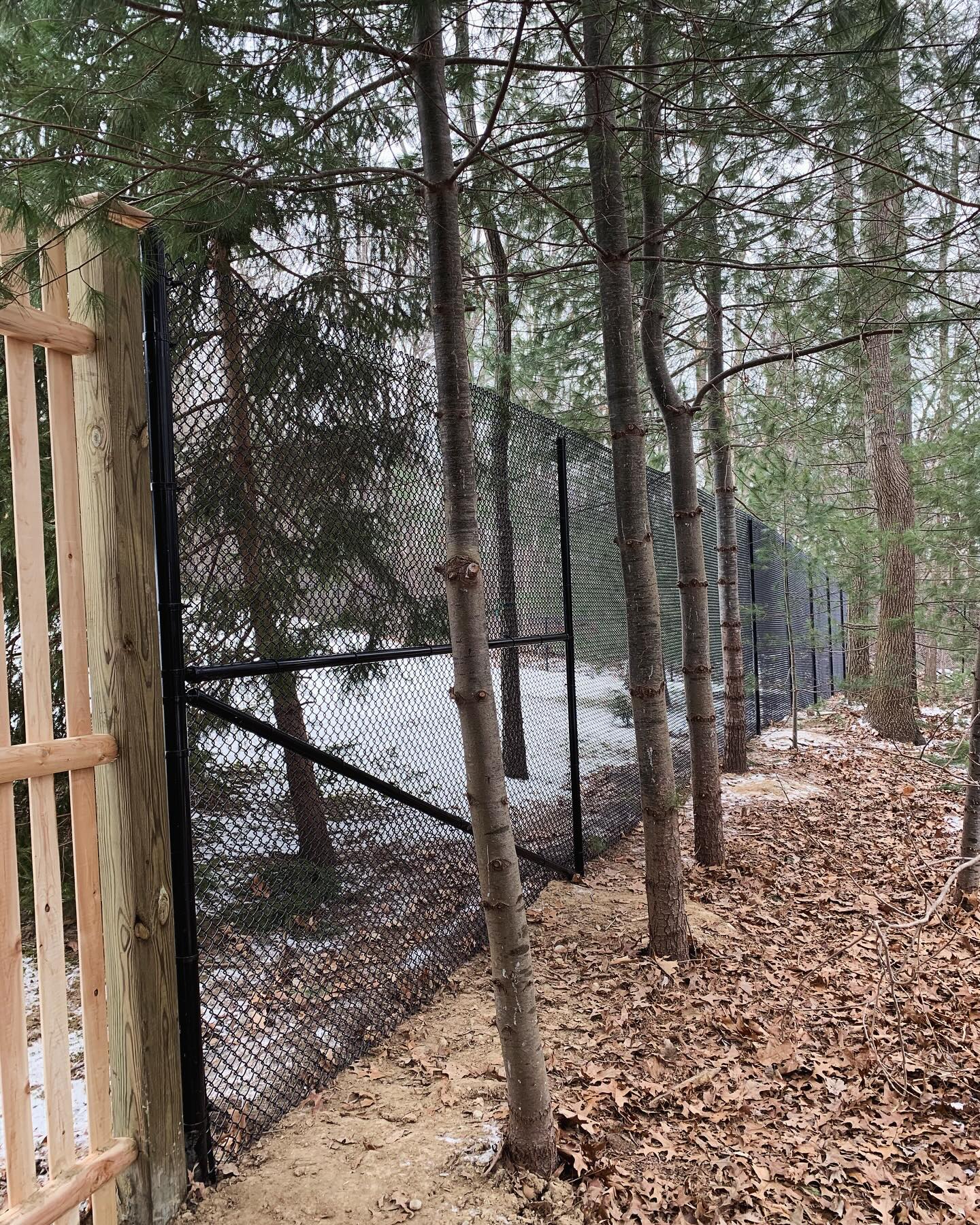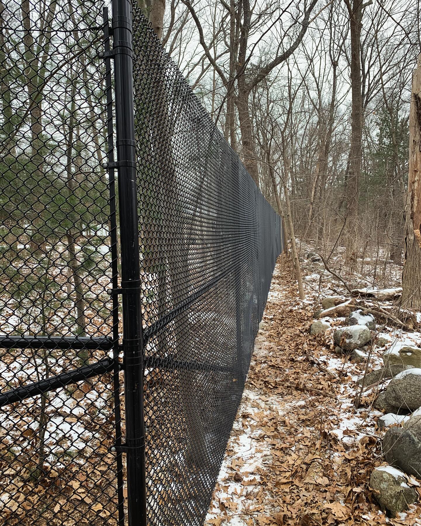 Nearly 1,000 feet of 8-foot high mini-mesh fencing installed at a Natick home keeps out unwanted critters while maintaining visibility. This specialized mesh design is perfect for homeowners with security concerns about wildlife. Need pest-proof fencing? Contact us for a free estimate.