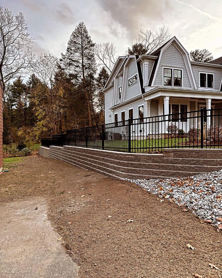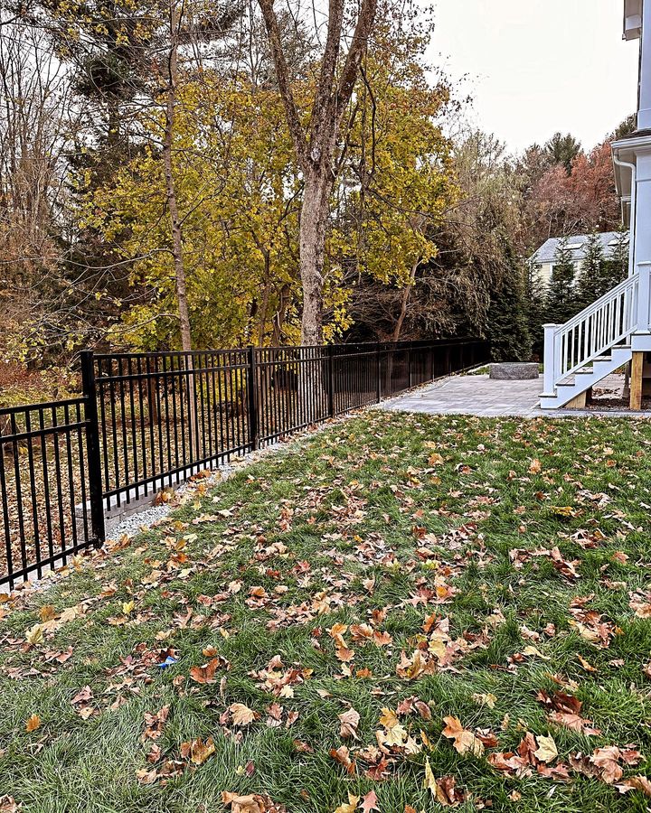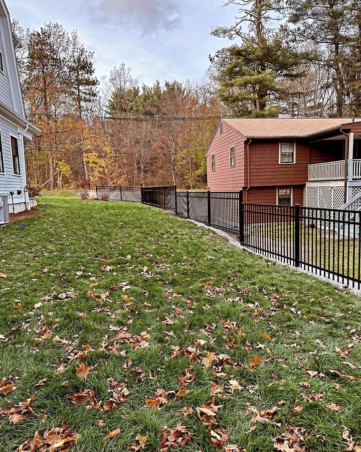 Keegan’s crew neatly fitted a 4-foot high black aluminum fence along a retaining wall at a new Needham home, matching the structure’s step design with precision. This premium fixture is a testament to our tailored approach to fencing, as presented in our portfolio. If a custom-fit, elegant aluminum fence is what you need before the winter, contact us for a no-obligation estimate.