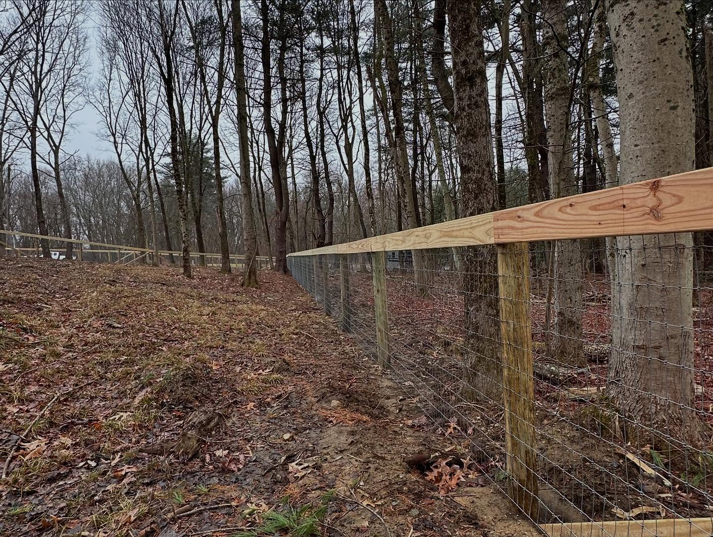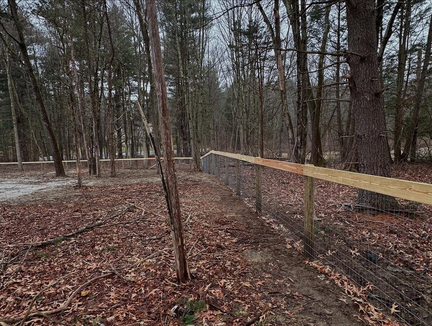 This extensive 1200-foot animal enclosure system in Sherborn encompasses three separate facilities including a professional riding ring, demonstrating our expertise in large-scale equestrian and livestock projects. The comprehensive installation showcases our ability to design and execute complex multi-space fencing solutions. Contact us for a free estimate.