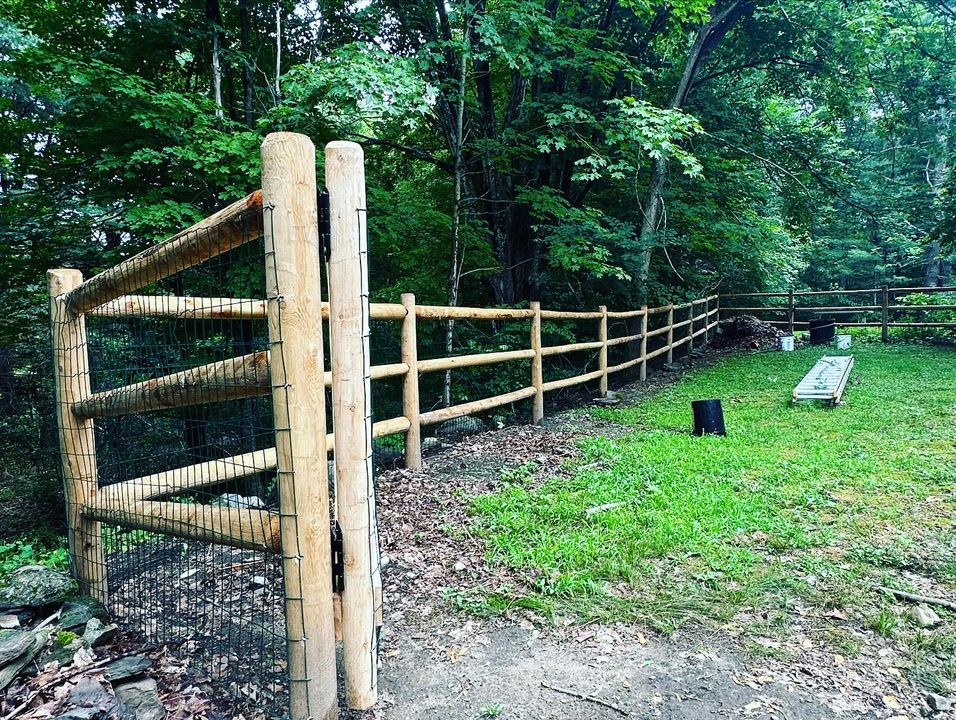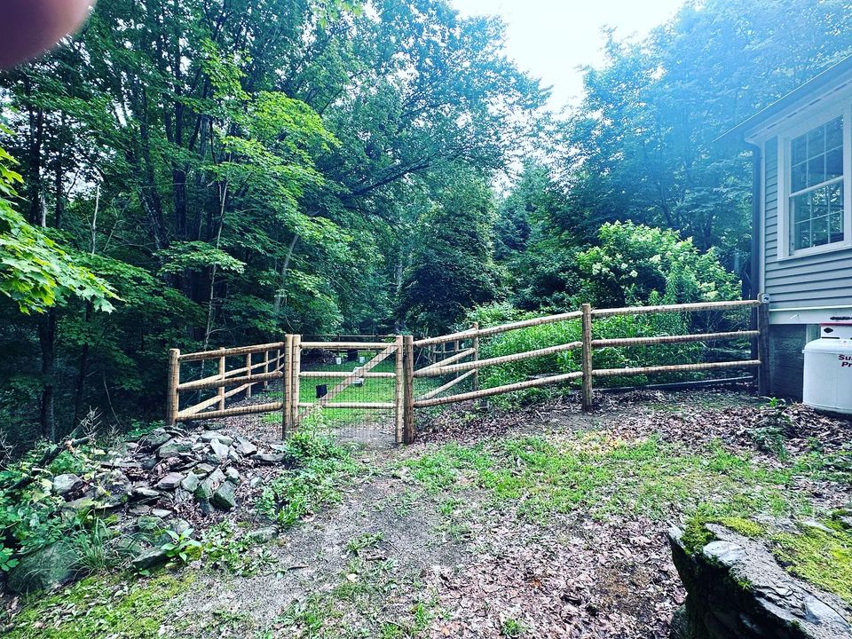 On a serene property in Sherborn, Todd’s crew installed a round cedar post and rail fence complemented with green welded wire, harmonizing the rustic aesthetic with added durability. Our portfolio is enriched with this countryside charm, showcasing a fence that marries classic appeal with functional security. Let us bring this rustic allure to your property. Ask for a free estimate today.