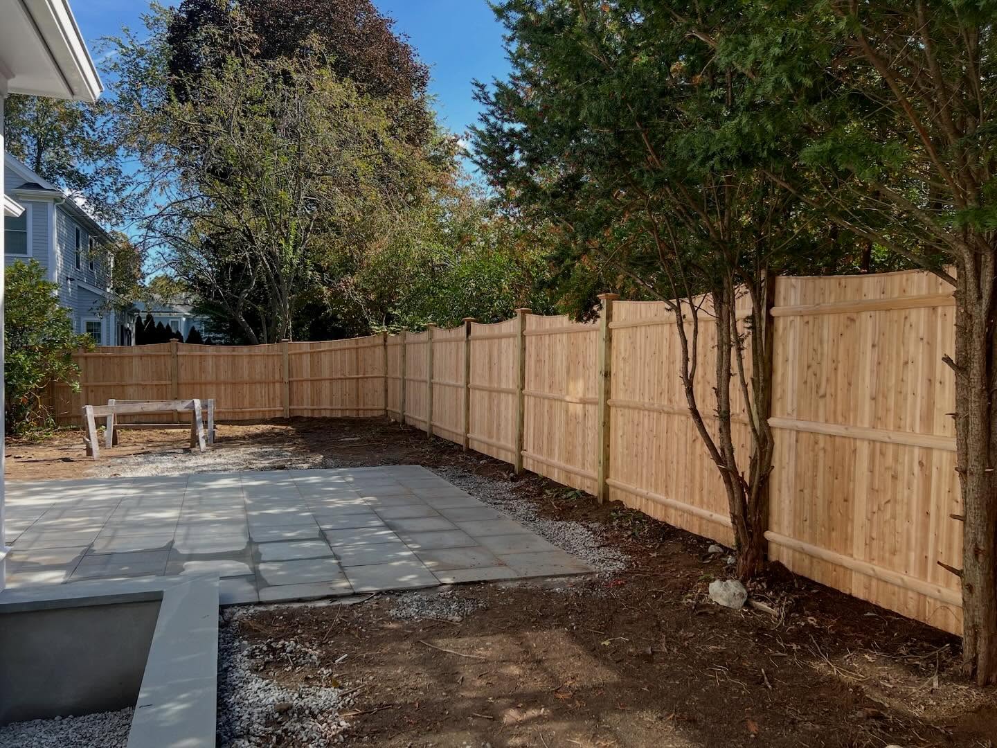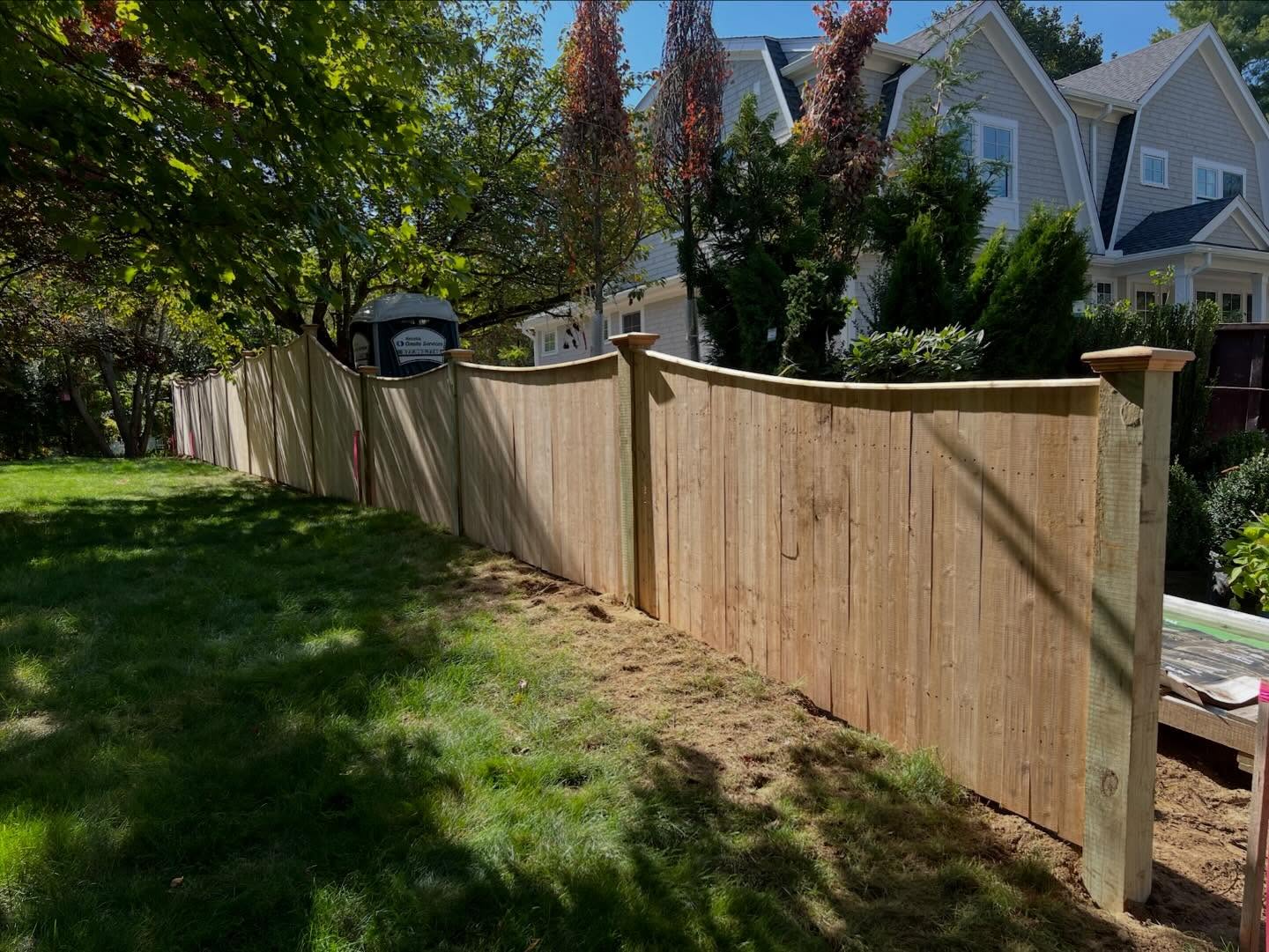 Albano’s crew created a stunning cedar fence installation in Wellesley with a beautiful mix of 7′, 6′, and 4′ heights featuring a distinctive scalloped top. The expert craftsmanship transforms this residential property with natural beauty and timeless style. Contact us for a free estimate.