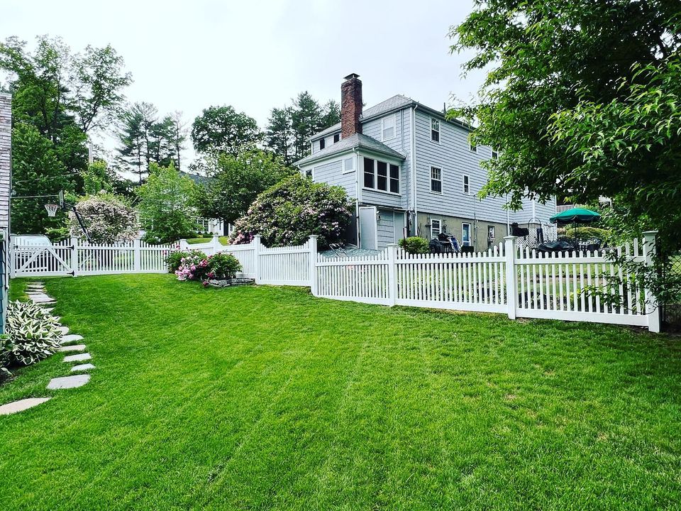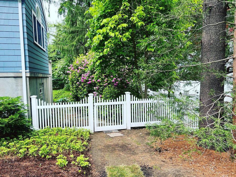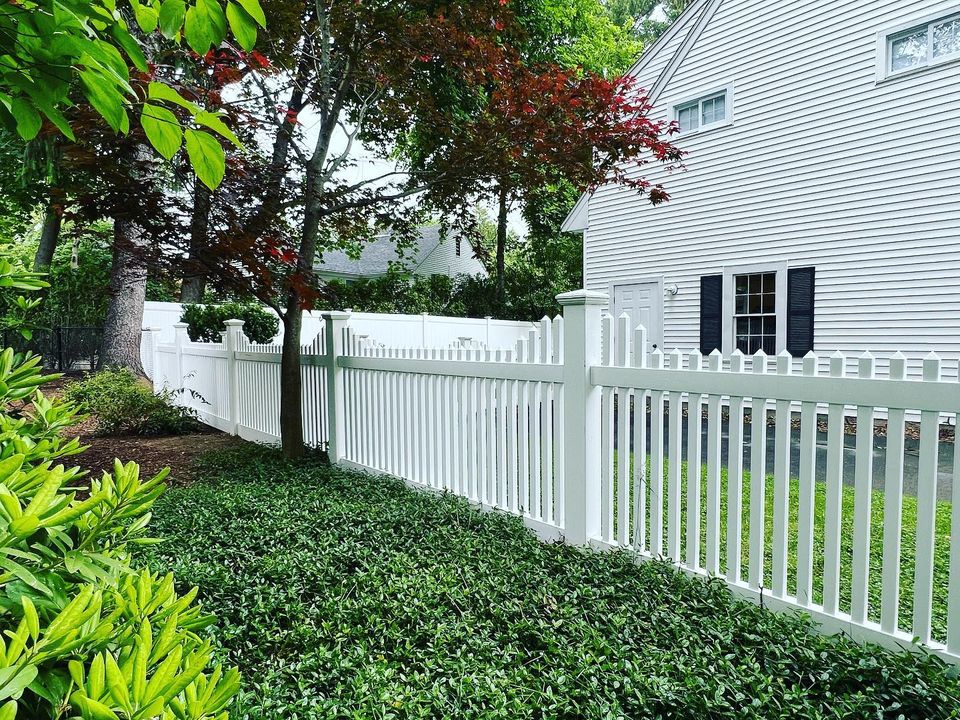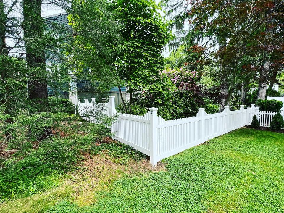 Todd’s crew intricately installed a Connecticut stepped 4-foot high vinyl fence with stained Chestnut spindles in Wellesley, capturing the town’s essence with this exquisite design. Discover the potential of stylized and personalized fencing solutions in our portfolio. To elevate your landscape with custom fencing, inquire about our free estimate.