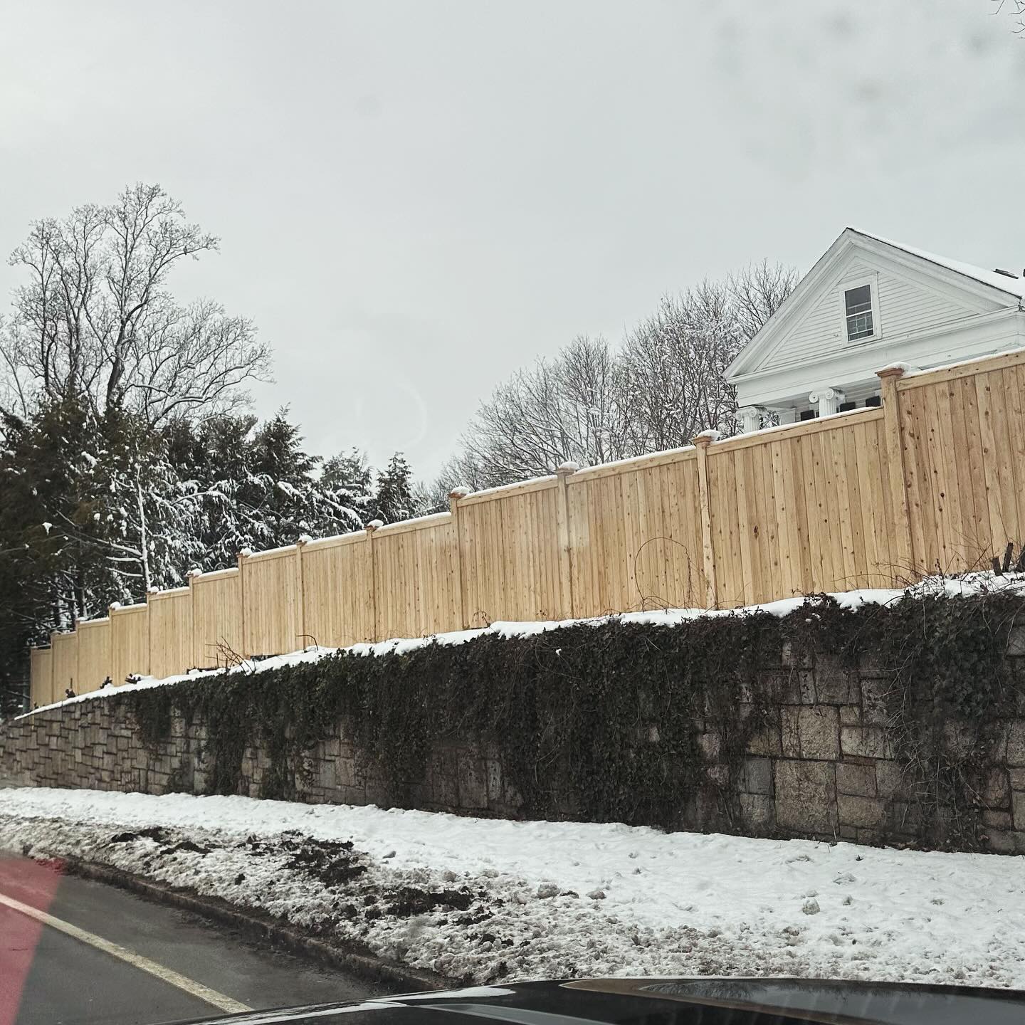 Keegan’s crew installed premium 6-foot tongue and groove cedar fencing on 6×6 cedar posts for Minglewood LLC in Wellesley on Route 9, creating a sophisticated residential barrier. The new year began strong with this showcase installation that demonstrates our commitment to premium materials and craftsmanship. Want premium cedar fencing? Contact us for a free estimate.
